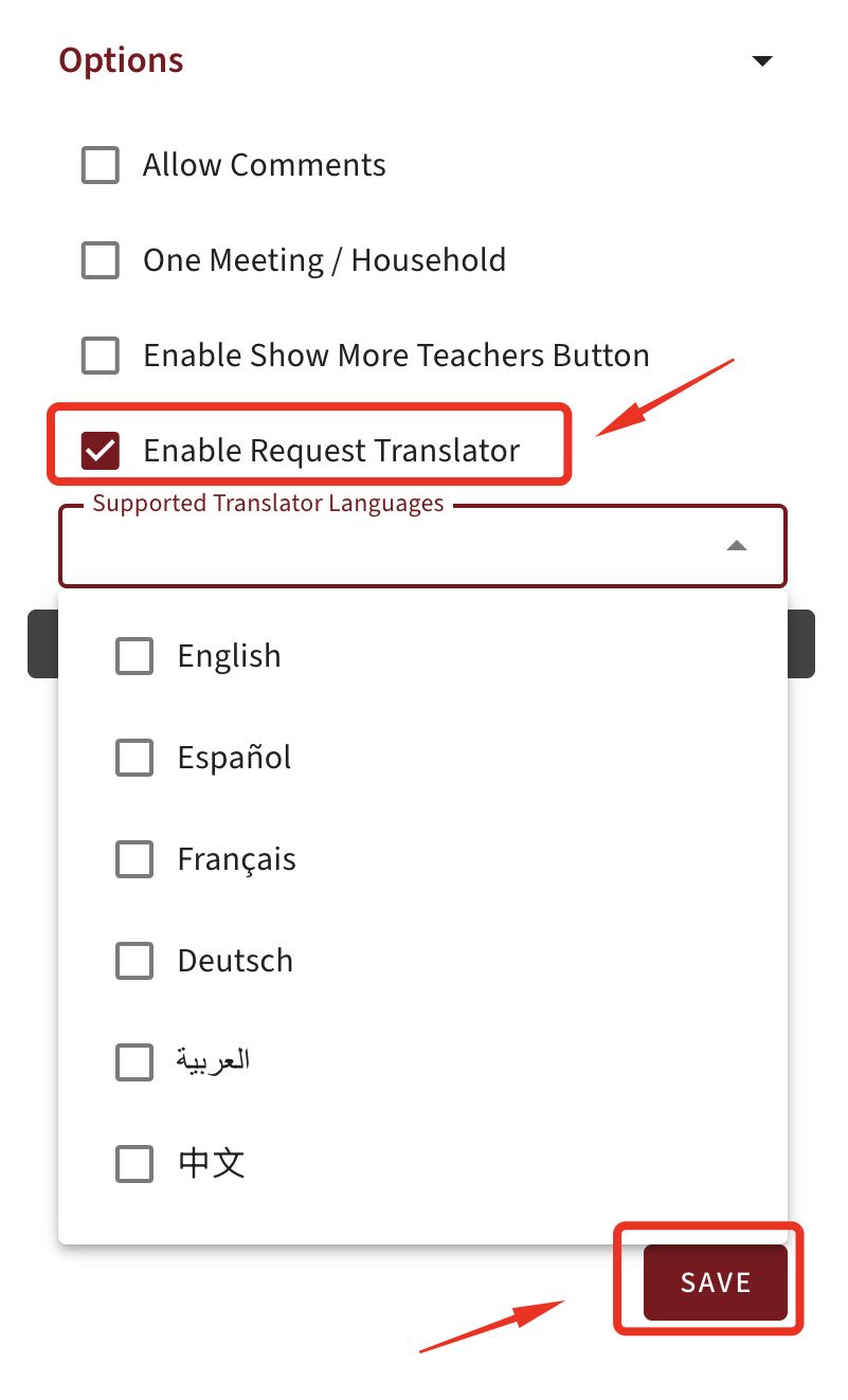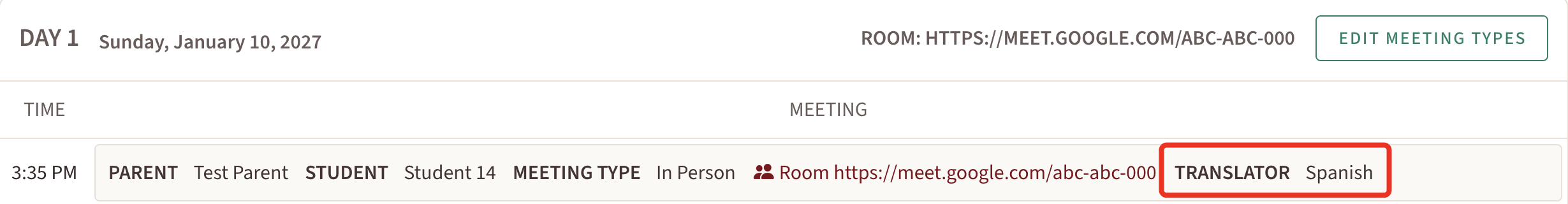 Once enabled, parents will have the option to indicate whether they need a translator when booking their meetings.