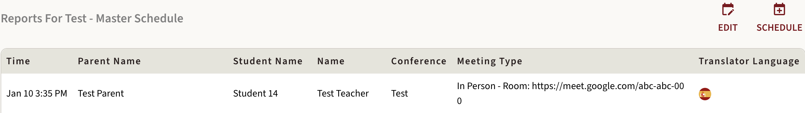 If some parents require a translator during their meetings, you can enable the Request Translator option for your conference. This feature helps you collect this information in advance and ensures teachers are aware of translation needs.