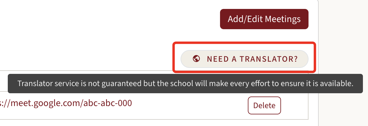 If your school has enabled the Request Translator option for parent-teacher meetings, you will be able to indicate whether you need a translator directly from your parent account.